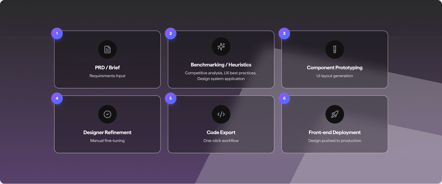The process enables rapid iteration cycles — moving from concept to tangible, testable interfaces in a fraction of the usual time — while maintaining consistency, accuracy, and creative integrity. In practice, it transforms design from a sequential process into a parallel, intelligent conversation between tools, teams, and ideas.